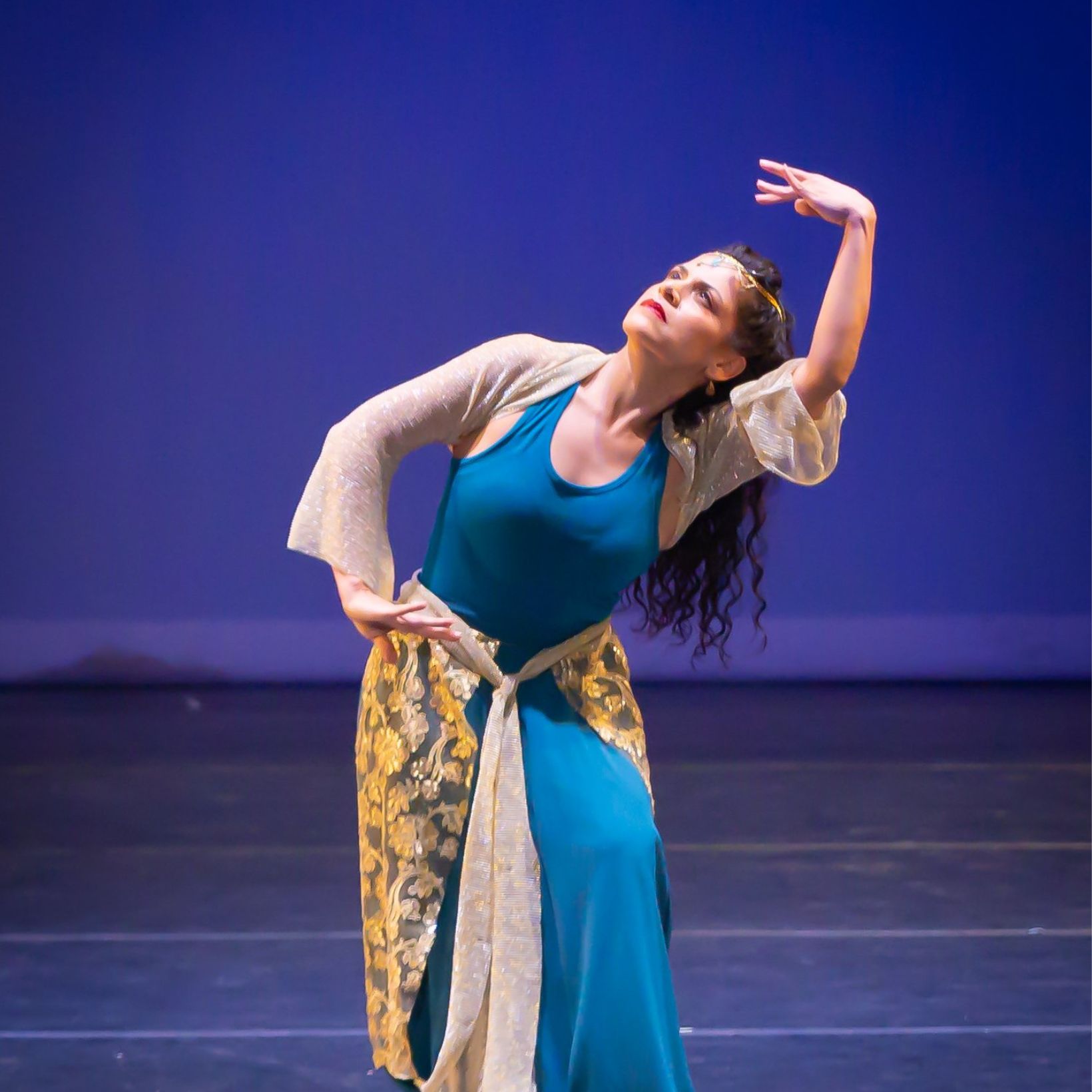 Challenge yourself by maintaining emotive, soft expressive movements in the arms, hands, upper body and neck while traveling with rhythmic foot patterns and turns. Content and length is equivalent to a 1-hour live class.